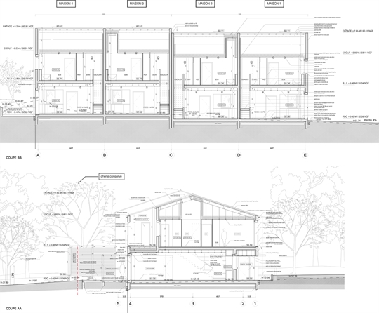 - 4 T4 en duplex, terrasses privatives, aménagements extérieurs